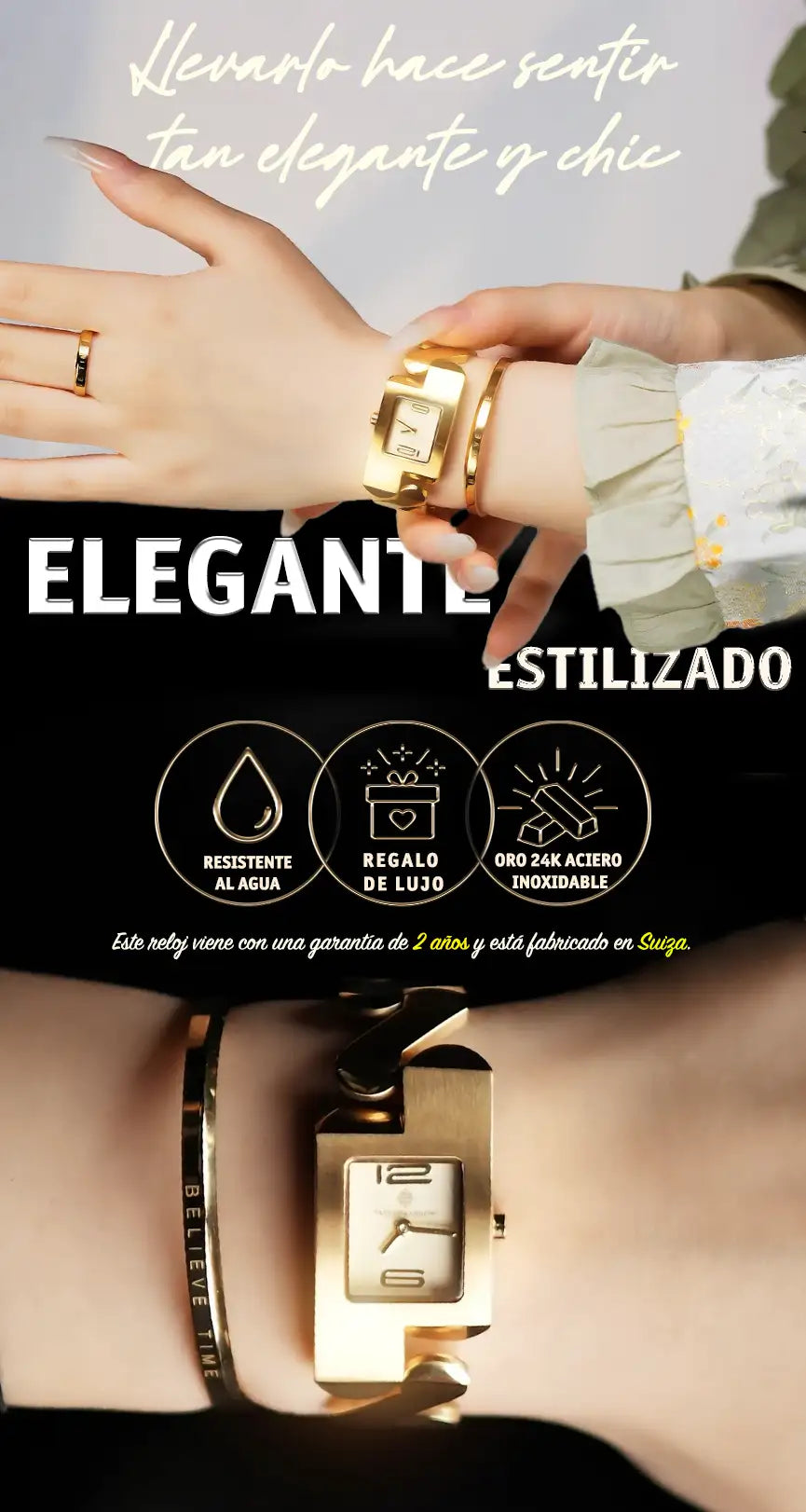 Este reloj te hará sentir más lujosa y profesional. Perfecto para la mujer de negocios, añade un toque de elegancia y sofisticación a tu estilo diario. Con una garantía de 2 años y fabricado en Suiza, es el complemento ideal para destacar