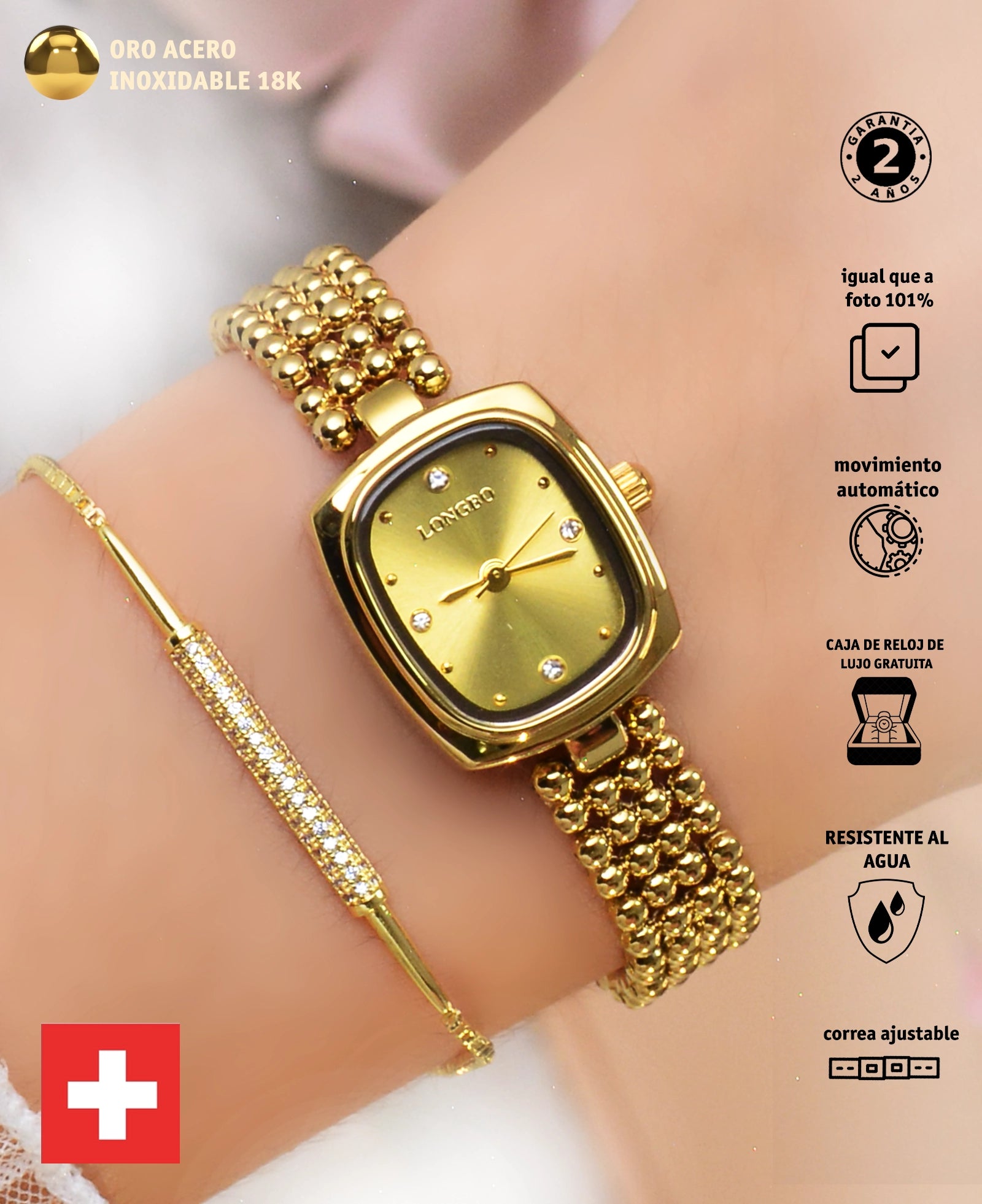 Este reloj te hará sentir más lujosa y profesional. Perfecto para la mujer de negocios, añade un toque de elegancia y sofisticación a tu estilo diario. Con una garantía de 2 años y fabricado en Suiza, es el complemento ideal para destacar