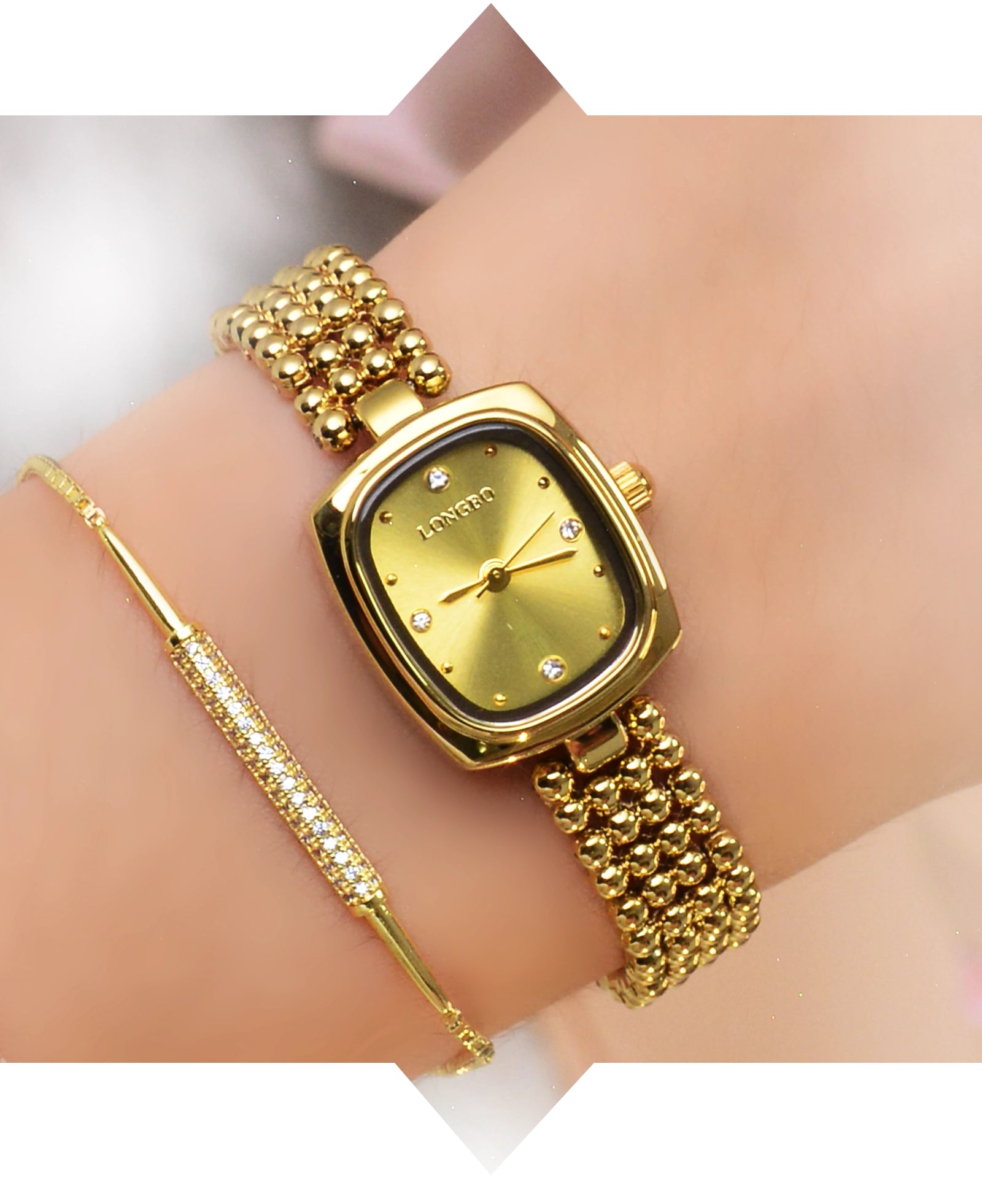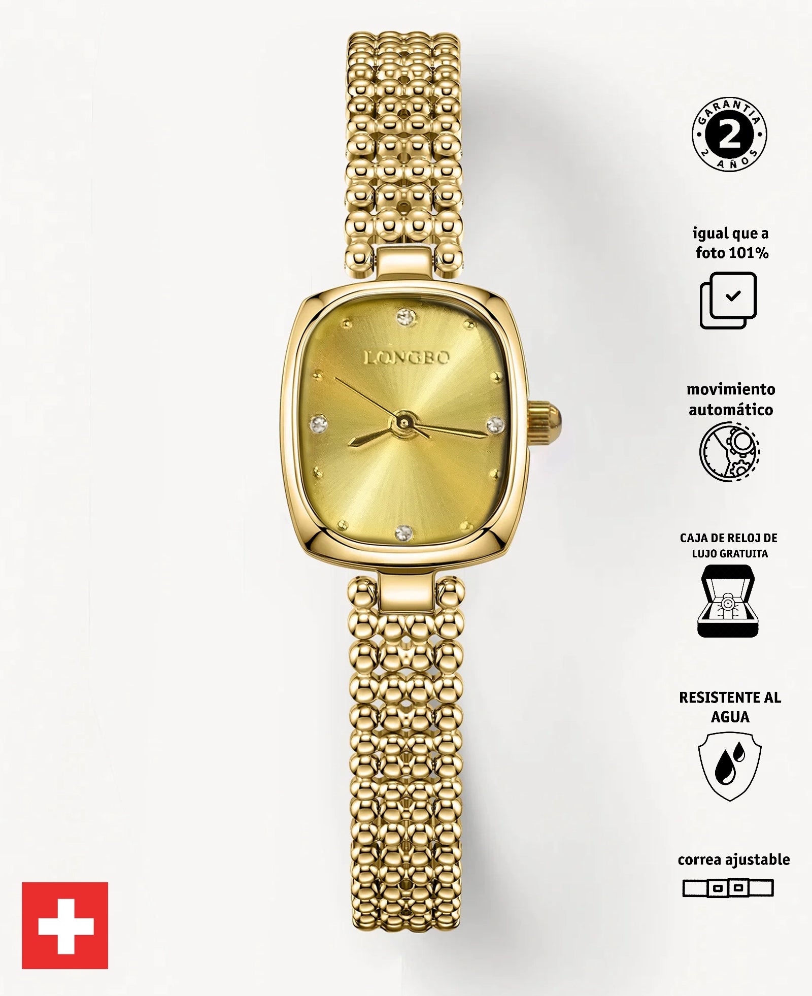 Diseño de inspiración vintage: Los relojes de oro LONGBO para mujeres cuentan con cajas de forma rectangular en estilo de "radio clásica". Abraza la nostalgia con un diseño de inspiración retro, hábilmente creado para una silueta elegante y un atractivo atemporal.
