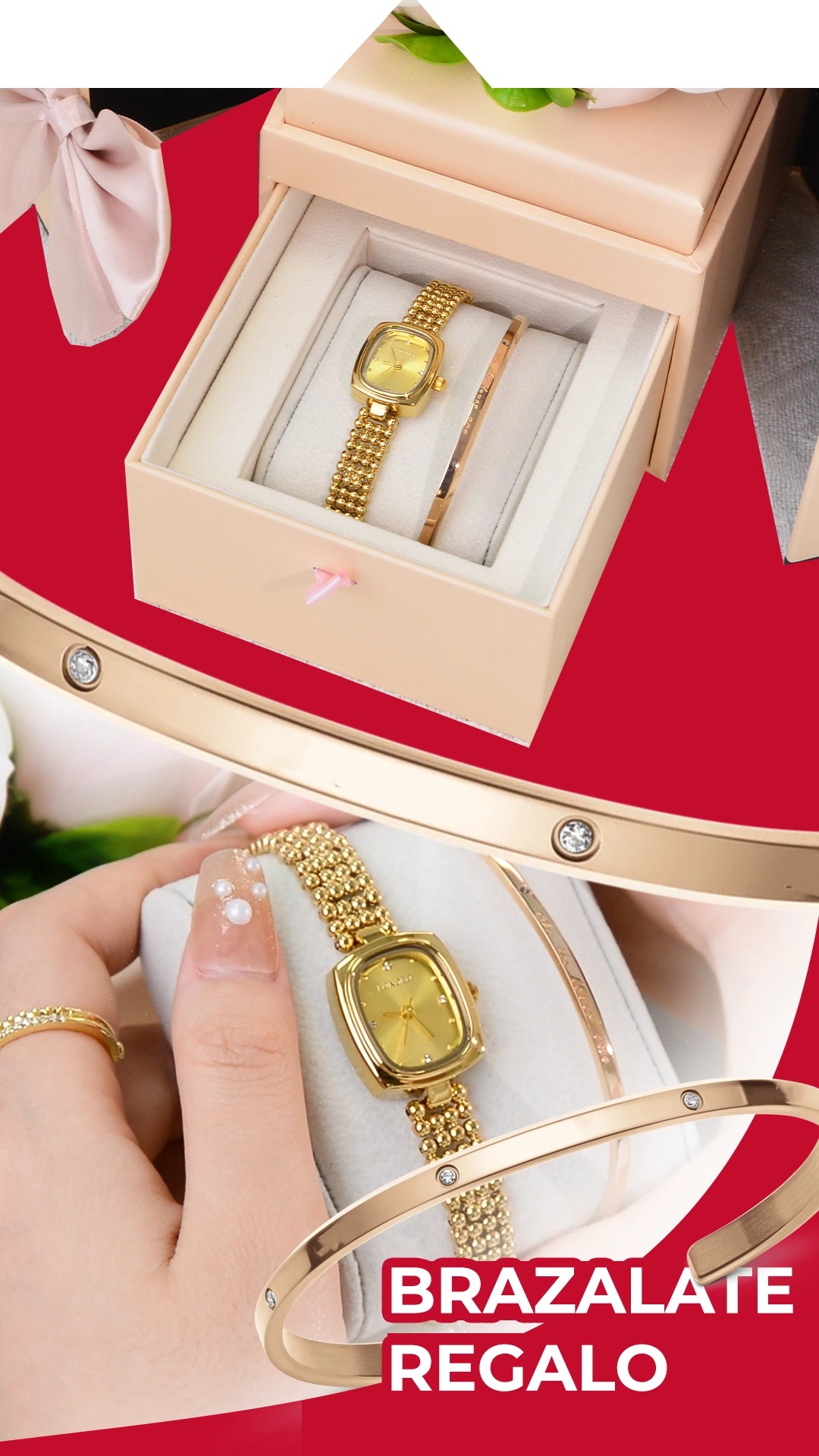 【Idea de regalo y ajuste fácil】 Este elegante reloj de oro es un regalo maravilloso para mujeres. Durante la jornada laboral o en momentos de ocio, adorna graciosamente su muñeca. Se pueden quitar hasta 8 eslabones fácilmente con las herramientas incluidas. Por favor, consulta el video para ajustar la longitud o contáctanos para recibir ayuda en cualquier momento.