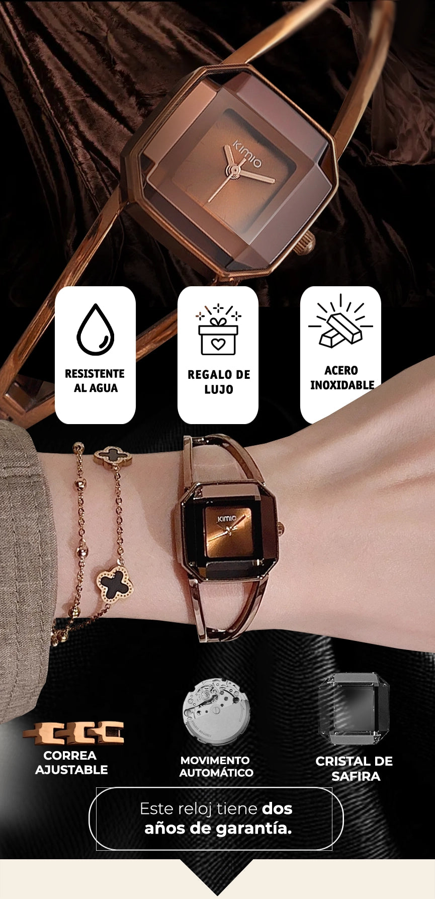 Este reloj te hará sentir más lujosa y profesional. Perfecto para la mujer de negocios, añade un toque de elegancia y sofisticación a tu estilo diario. Con una garantía de 2 años y fabricado con materiales de alta calidad, es el complemento ideal para destacar