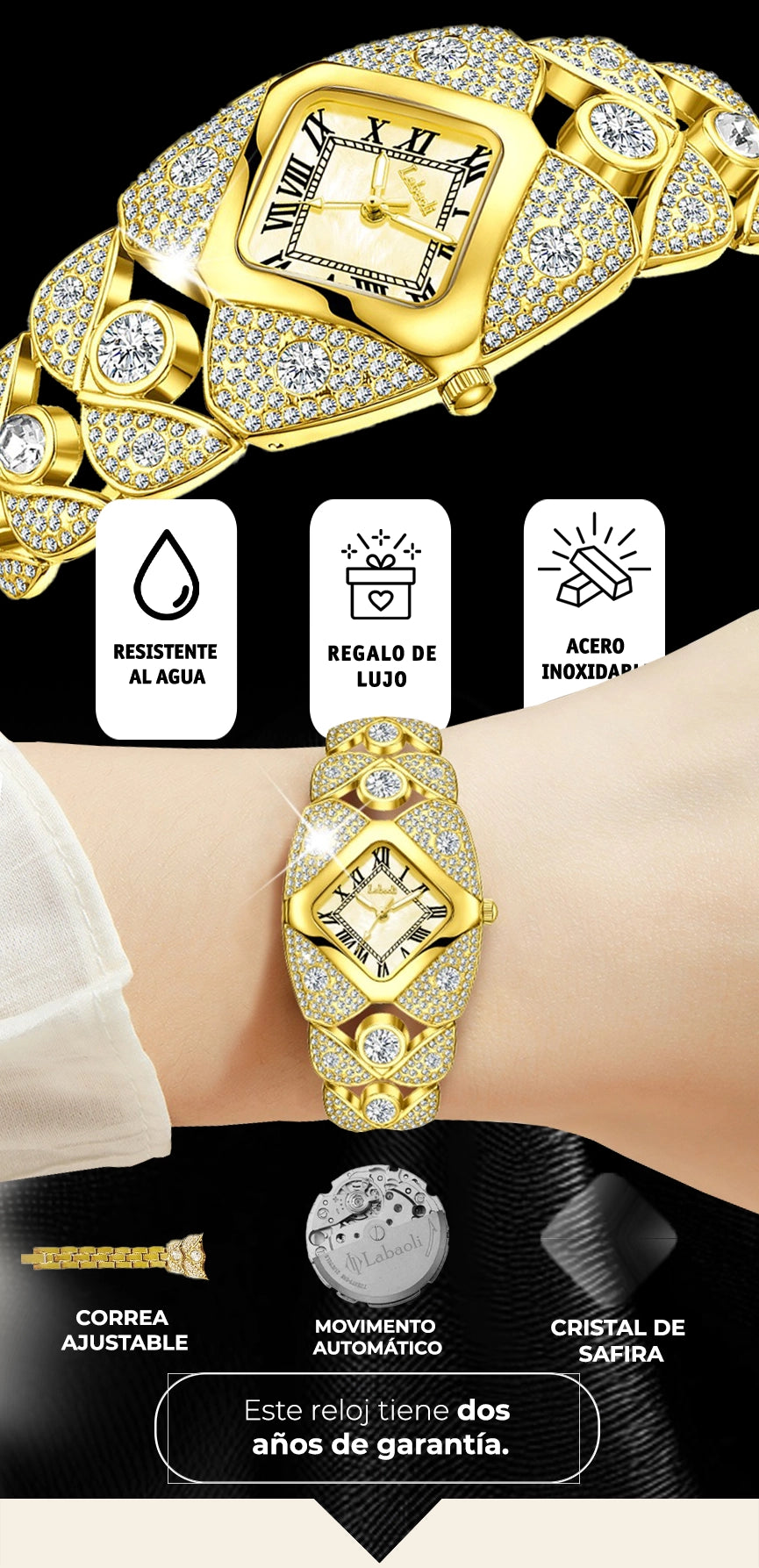 Recibirás exactamente la misma reloj que ves en la foto, pero te aseguramos que en persona es aún más impresionante. Su brillo, su elegancia y su calidad superarán tus expectativas. Si por alguna razón no estás completamente satisfecho, nuestro equipo de soporte está siempre disponible para asistirte.