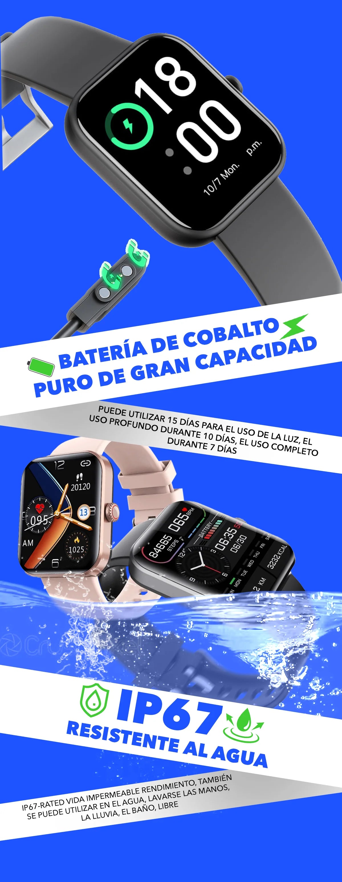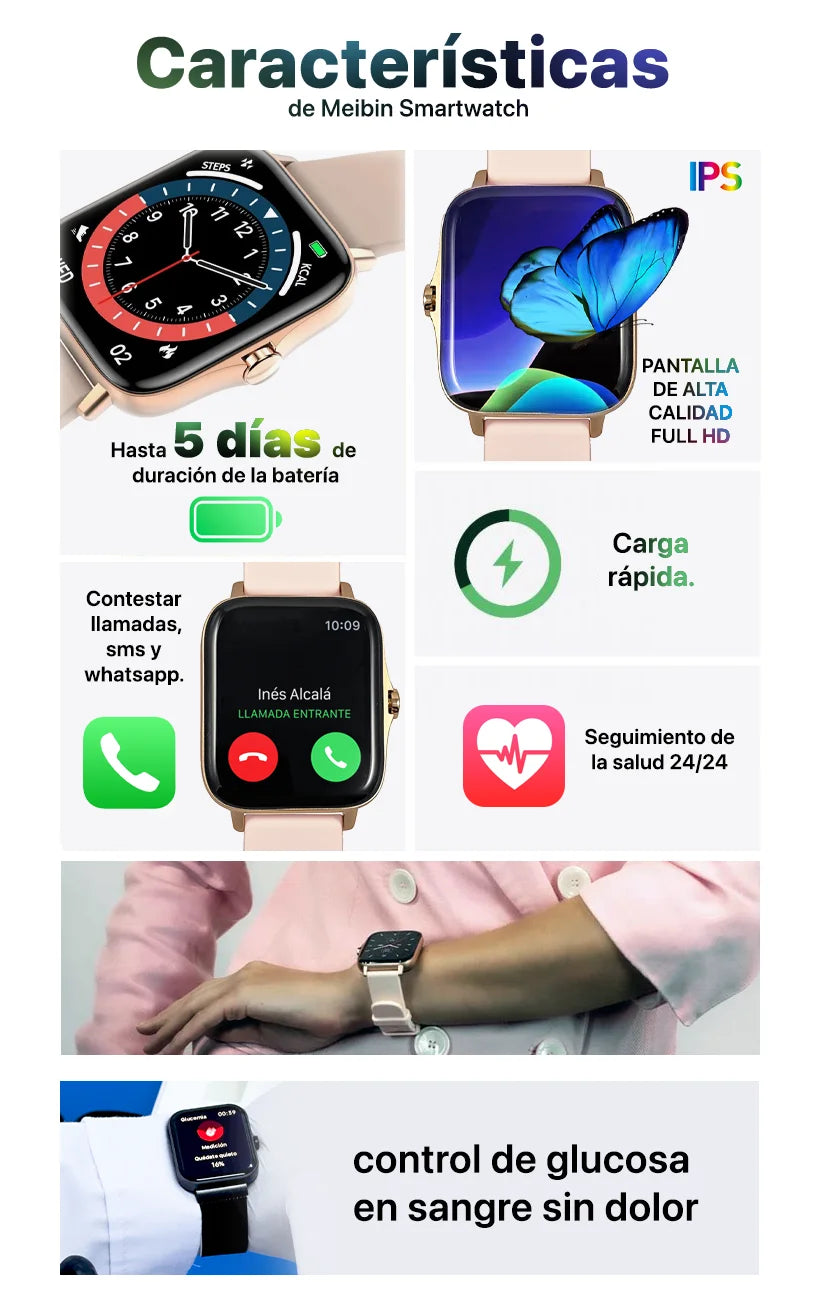 Descubre la combinación perfecta de estilo y funcionalidad con este excepcional reloj inteligente. Conéctate sin problemas a tu teléfono a través de Bluetooth, disfruta de imágenes de fondo personalizables y accede a una amplia gama de funciones que rivalizan con los mejores relojes inteligentes. Eleva tu rutina diaria con monitoreo de salud, llamadas, mensajes, música y más de 50 modos deportivos. Es más que un simple reloj; es tu compañero de estilo de vida.