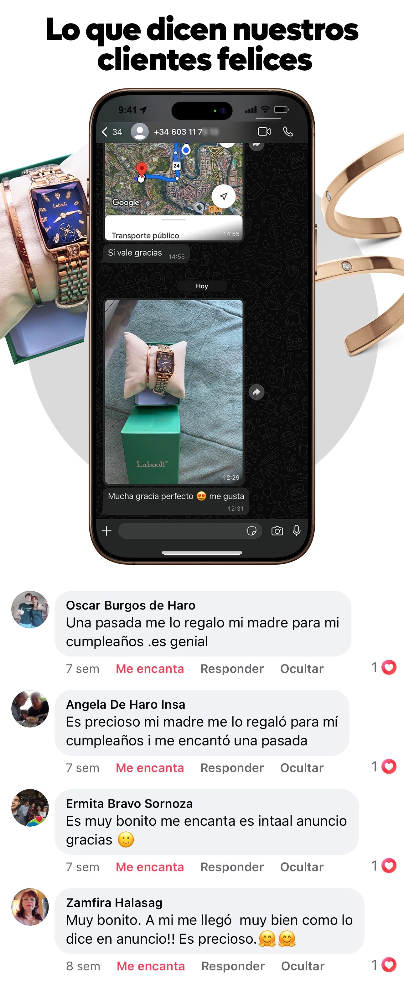Recibirás exactamente la misma reloj que ves en la foto, pero te aseguramos que en persona es aún más impresionante. Su brillo, su elegancia y su calidad superarán tus expectativas. Si por alguna razón no estás completamente satisfecho, nuestro equipo de soporte está siempre disponible para asistirte.